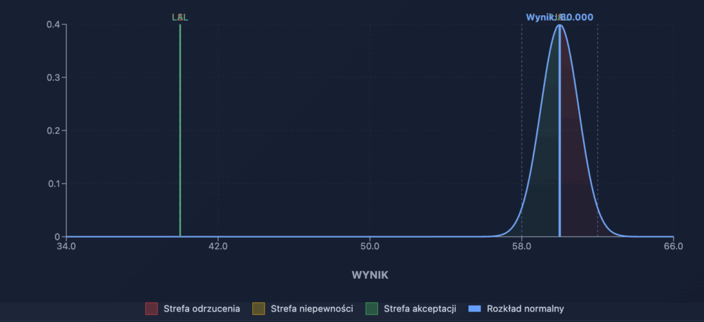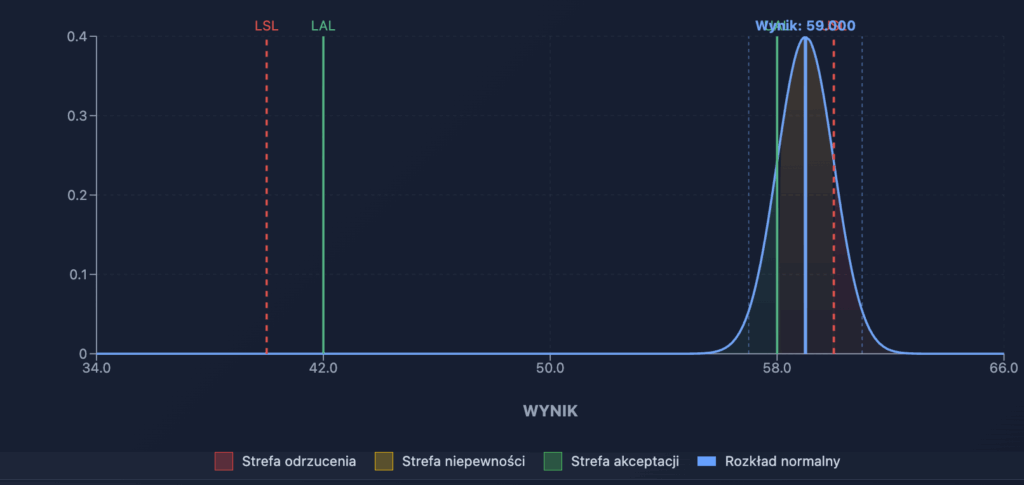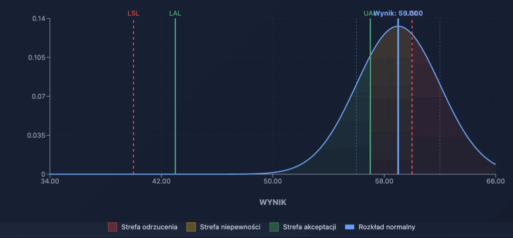 - strefa akceptacji – wyniki w tym polu uznajemy za zgodne: